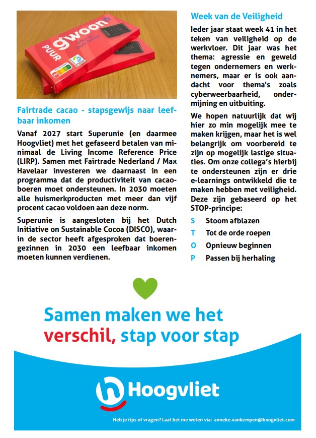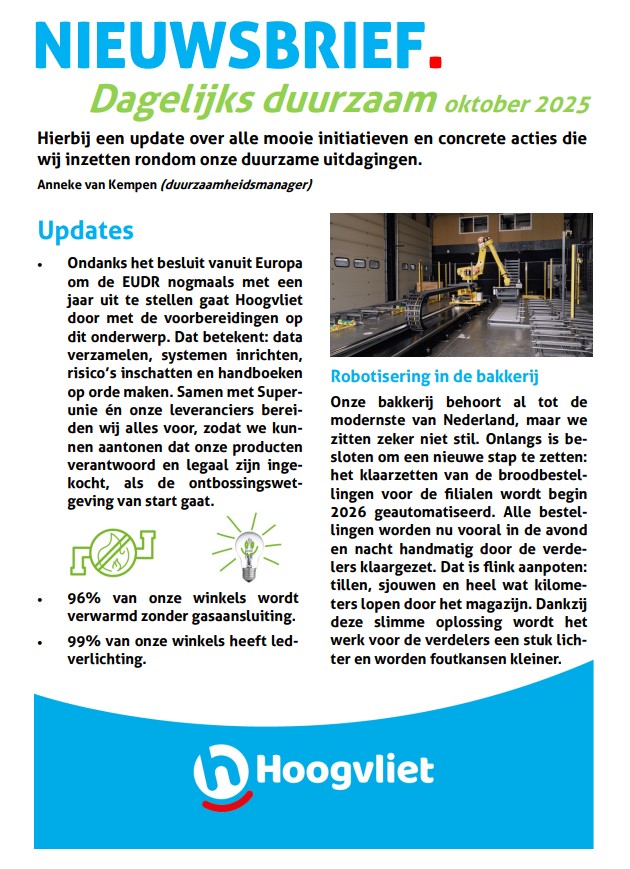 Hierbij onze nieuwsbrief ‘Dagelijks duurzaam’ met alle updates over de mooie initiatieven en concrete acties die wij inzetten rondom onze duurzame uitdagingen.